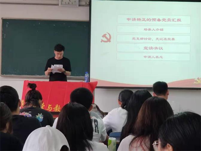 2021年6月10日,文学与教育学院学生第一、二、三党支部在B楼教室分别召开党员转正大会,讨论关于李艳、何青青、叶文君等16位预备党员申请转为正式党员的事宜。大会由各党支部书记主持,出席数符合要求。