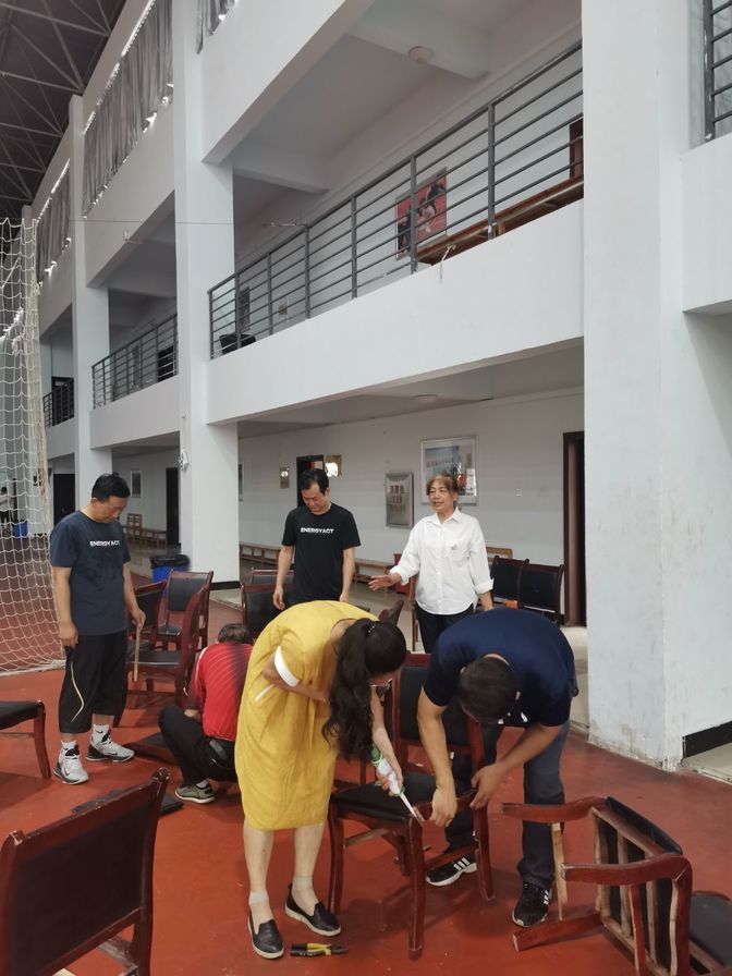 为了深入开展党史学习教育,发挥党员先锋模范带头作用,切实帮助群众解决实际问题,做到学史明理、学史增信、学史崇德,学史力行。体育教学部直属支部组织全体党员于6月16日上午9:00在风雨操场开展义务维修活动,解决体育教学部室桌椅、板凳等的维修需求,改善我们的学习工作环境。