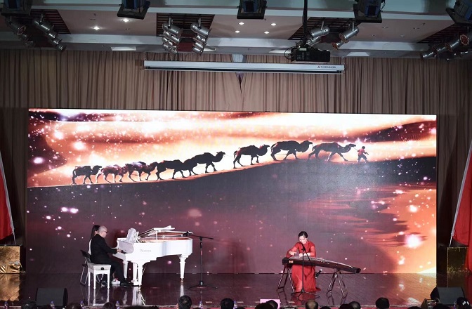 音乐会在钢琴与古筝合奏《行者》中拉开序幕。男声独唱《红星照我去战斗》《生命的星》表达出一代人革命理想高于天的信念。女生独唱《九儿》以跌宕起伏的情节,唱出抗战时期普通妇女的家国情怀。《我爱你,中国》抒发了海外游子眷念祖国的无限深情。钢琴独奏《我的祖国》表达了志愿军战士的英雄主义气概。一首首经典音乐,一段段温暖旋律激励着在场的每一位观众。最后,全场齐声高唱《没有共产党就没有新中国》,唱出了对祖国、对党的无限的热爱。