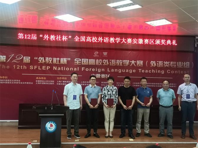 6月26日-27日上午,第十二届“外教社杯”全国高校外语教学大赛(外语类专业组)安徽赛区比赛在安徽财经大学举行,我校外国语学院教师徐善文获大赛二等奖。
