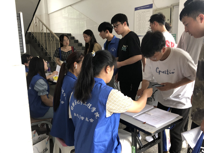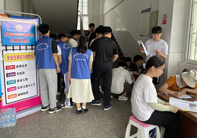 6月25日毕业典礼结束后,毕业生陆续踏上回家的征途,材料与化学工程学院学生会、青年志愿者协会以各寝室楼群为单位,深入宿舍,以饱满的热情为毕业生们提供行李搬运志愿服务。另一部分志愿者,在材化学院办理离校手续的教学楼C楼门前,设立了志愿服务点,协助毕业生完成离校手续的办理、档案、学位证、毕业证的发放等工作。