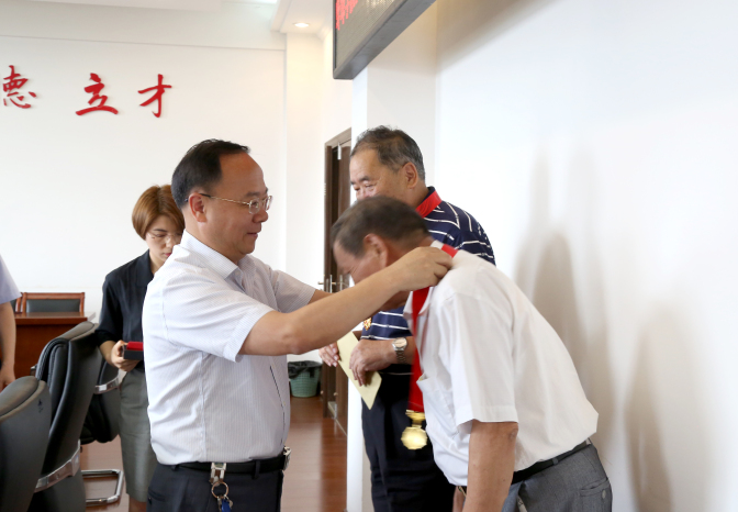 会上,陈国龙代表党委为党龄满50年的老党员代表颁发“光荣在党50年”纪念章,向光荣在党50年的老同志表示由衷的敬意和节日问侯,同时向受到表彰的“两优一先”代表表示热烈祝贺。他指出,在建党100周年之际,党中央决定为党龄50周年以上的党员颁发纪念章,这在党的历史上是第一次,充分彰显了以习近平同志为核心的党中央尊重老党员、关心老党员、爱护老党员的鲜明立场,充分体现了党和人民对老党员历史贡献的高度肯定。这一枚纪念章,既是“礼赞章”,也是“奋进章”,是政治上的激励、精神上的鼓舞,是对老党员的最好褒奖,是对广大党员的最大激励。
