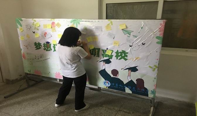 毕业生返校之际,学院一是邀请优秀毕业生代表与低年级学生一起参与座谈,畅聊大学时光,回忆青春往事,分享经验成果,收集意见建议;二是设置告别签名墙、毕业留言板等供毕业生书写临别感言,表达自己的不舍与留念之情;三是悬挂欢送毕业生横幅及离校宣传标语等,表达学院对毕业生的真诚祝愿;四是开展纪念品互赠活动,学院向各位毕业生赠送水晶印章,毕业生也将自己签名的志愿服务纪念衫、优秀学习笔记等赠予学院,以此表达对学院的不舍与感恩。