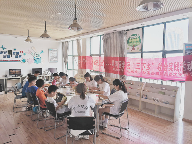 为深入贯彻落实习近平总书记关于青年工作的重要思想,引导和帮助广大青年学生上好与现实相结合的“大思政课”,以实际行动庆祝中国共产党成立100周年,落实“永远跟党走,奋进新时代”的活动主题,蚌埠学院外国语学院在暑期“三下乡”社会实践之际,组建志愿服务实践团,深入龙湖春天社区,开展“大手拉小手,阅读齐步走”的社区志愿服务活动,帮助社区儿童开展以阅读为主体的系列志愿服务互动,在增加阅读量、拓展知识面的同时,达成暑期情绪疏解,远离电子产品、形成良好的读书习惯、扩大知识储备。外国语学院党总支书记赵睿、龙湖春天社区党支部书记许黔蓉参加了活动启动仪式。