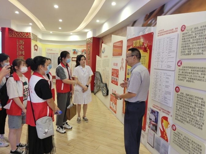 最后志愿服务队来到蚌埠市疾控中心参观总结学习,工作人员对志愿者们的到来表示热烈欢迎。队员们在“最美医生”沈雁的带领下参观展览馆,详细了解疾控中心的发展历程和讲解艾滋病相关知识。大家深刻认识到“禁毒防艾,远离毒品,关爱未来”这不仅仅是一句简单的口号,更像是一个警钟。
