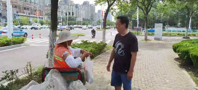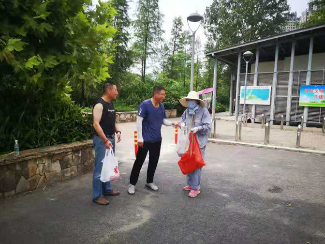 在龙湖公园和院风雨操场,体育教学部党员同志与环卫工人亲切交谈,关切询问他们的工作和生活情况,为他们送上防暑降温慰问品,感谢他们的辛勤劳动。环卫工人是城市的“美容师”,是最可爱的人,长期披星戴月、不辞辛苦,默默坚守一线,是他们的辛劳和汗水,换来了城市生活环境的干净整洁和居民幸福指数的提升,为全市创建全国文明城市和全国卫生城市工作奠定了坚实基础。我们应该呼吁大家关爱环卫工人,时刻把环卫工人的冷暖放在心上,用心用情改善他们的工作和生活条件,帮助解决实际困难,让他们安心工作。