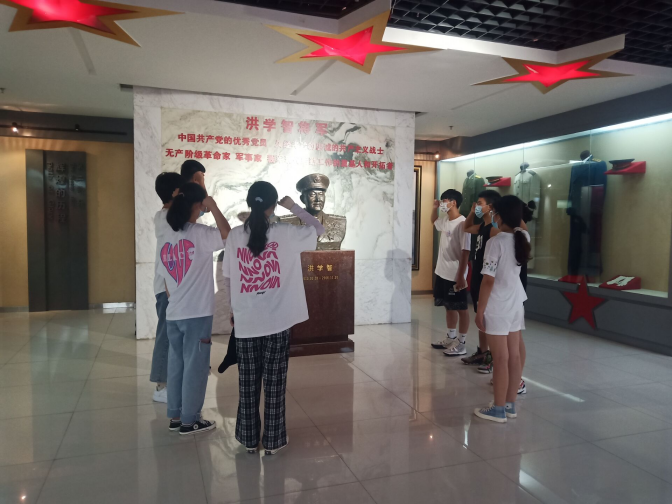 7月27日上午,“传承红色基因,致敬建党百年”小分队来到金寨县红军广场前集合,途中经过烈士陵园和革命烈士纪念馆。同学们怀着沉重的心情踏上每一层阶梯,每个人心中都怀着一颗报国心,看着刻在纪念塔上的显目的文字足以让国人牢牢记住不堪的过往。紧接着同学们来到金寨红军烈士墓园,尽管即使是阳光明媚的早晨,每个人的脸上却还是格外庄重严肃。中国共产党自成立至如今已有整整百年历史,同学们在“峥嵘岁月,辉煌百年”八个大字下,深刻感受中国人民面对苦难时奋起抗争、百折不挠的磅礴力量,随后同学们来到此番行程的末站——革命烈士纪念馆,在这里记录了396位中华人民共和国成立前牺牲的团级以上红军烈士英名,每一位都曾对国家做过巨大贡献,其中洪学智将军是我军现代后勤工作的奠基人物开拓者,为粉碎美军对于志愿军后勤保障所进行的绞杀战作出了重要贡献。同学们在重要革命烈士纪念馆中深入了解党史,走近革命时代,感受军民血肉情。