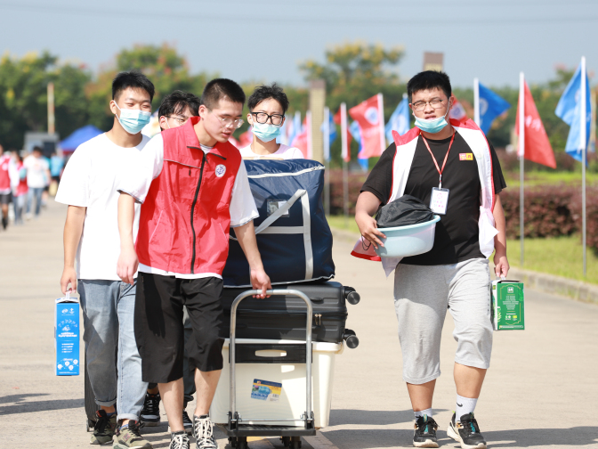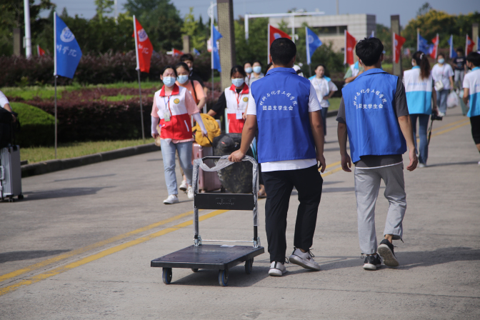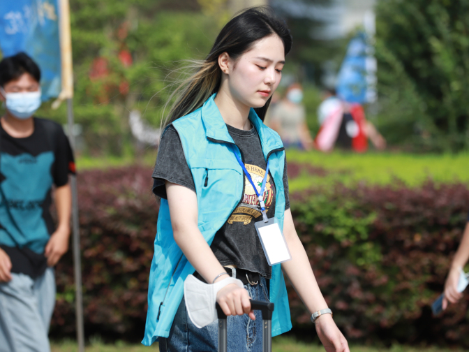 校青年志愿者联合会的120多名志愿者兵分两路开展迎新志愿服务:校外接站服务,迎接新生的志愿者早早来到高铁站、火车站接待我校新生,带他们乘坐校车,安全引领到校门口;校内接待引导,志愿者们在校园内指引新生报到,为新生提供各类帮助和服务。疫情形势下,在志愿服务的过程中,志愿者们还格外重视自我防护。“疫情当下,我们的防疫措施也没有落下”,青志联的负责人李曼玉告诉记者,为了做好防疫,他们做了一系列的工作,不管是人员安排还是物资准备。