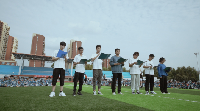 联欢尾声,落日的余晖满洒着现场。顷刻间,在新生合唱团的带领之下,《我和我的祖国》那悠扬的旋律伴随着全场师生的合唱一起,自由舒畅地飘荡在一面面旗帜汇成的鲜红的海洋。“我和我的祖国,一刻也不能分割”,歌曲中所饱含的这份浓浓的家国情怀,既是每一位中国人最质朴的情感,更是每一位青年学生最崇高的责任。