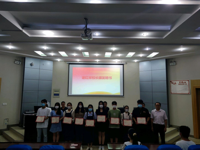 大会由刘伟伟主持,刘伟伟宣布大会开始,全体师生起立奏唱国歌,接下来,李海军宣读了第二届学生会人员名单,并对新一届学生会同学们表示祝贺,之后由谢红祥给主席团和各部门部长颁发了聘书。