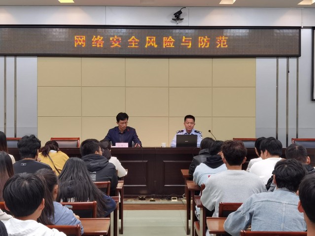 10月12日下午,信息化与数据管理中心邀请蚌埠市公安局网络安全保卫支队副支队长裴锋警官作了主题为“网络安全风险与防范”的网络安全教育讲座,学校各二级学院辅导员和学生代表参加了讲座。