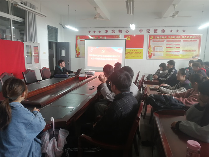10月20日中午,土木与水利工程学院学生党支部在学院会议室A307进行了习近平总书记“七一”重要讲话精神专题学习。会议邀请了马克思主义学院教师任义天,大学生宣讲团成员何归航、冯蕾、施忠玥进行专题宣讲,学生支部全体党员参加。