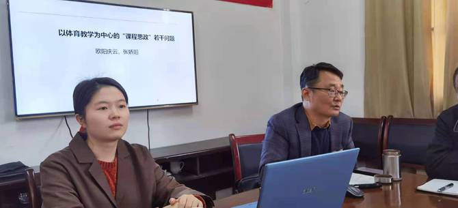 欧阳庆云老师以《以体育教学为中心的“课程思政”若干问题》为题,提出在体育教育过程中“融入”和“挖掘”思政资源是开展体育“课程思政”的特点。具体从教学计划的制定、教学过程的设计和教学活动结束后的反思等方面进行了针对性辅导。欧阳老师提出建议:建立体育“课程思政”指标体系,为体育教学改革思政元素的发掘提供了新的思路。