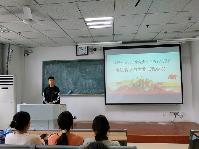 为进一步深入学习党史,扎实推进党史学习教育。10月22日中午,蚌埠学院大学生党史学习教育宣讲团成员汪倩、钱阳、宋锐在思政辅导员杨倩老师的带领下走进食品与生物工程学院,为食品与生物工程学院青年团员做党史学习教育专题宣讲,参加此次活动有学院团总支学生会和青协部分学生干部及21级食品与卫生营养学全体学生。