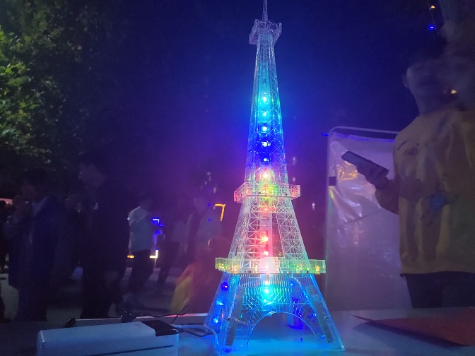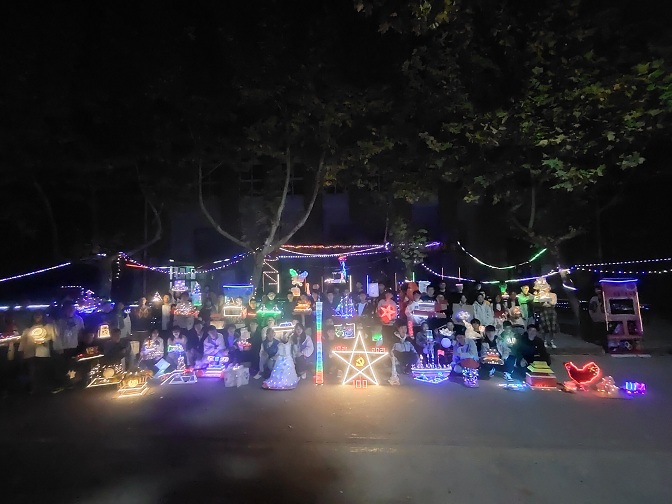 灯展在校园主干道举行,展板上手指灯和灯带拼成了“电电院”三个大字闪亮醒目,点亮了图书馆前的道路。168名参赛学生带着作品展台上精心展示,每个作品都展现了独特的魅力,精美的作品和靓丽的效果,吸引了大批同学前来参观。