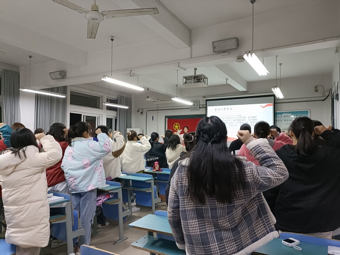重温入团誓词。“我志愿加入中国共产主义青年团,坚决拥护中国共产党的领导……”,在郑重庄严的誓词中,支部团员强化了团员意识,增强了个人对团组织的认同感和归属感。团员们高举右手,紧握右拳,再次郑重地宣誓,宣誓铿锵有力,慷慨激昂。团员们举起的右手紧握的是共青团员的忠诚,专注的目光凝聚着共青团员的坚定。教室里回荡的神圣庄严的入团誓词,仿佛又让在场的全体共青团员回到了入团时那令人激动而又难忘的时刻,为共产主义事业而奋斗的信仰再一次得到了升华。