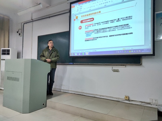 无机非金属材料工程专业导论课程邀请了党委副书记、院长丁明教授作为主讲人。丁明教授通过讲解无机非金属材料基本概念、分类、无机非金属材料的特点,以及功能无机非金属材料在电、热、光、磁、声等领域的应用及优势,以一个个生动的例子为学生打开了无机非金属材料领域的大门。在他的带领下,同学们从简单的认为无机非就是做水泥、玻璃、陶瓷的简单认识,到对专业全面的、深入的认识,学习兴趣和学习主动性得到了极大的激发。
