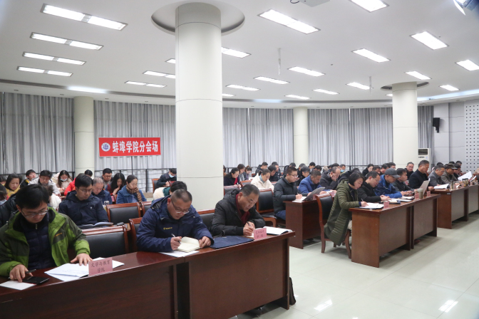 12月22日,蚌埠学院领导干部学习贯彻党的十九届六中全会精神专题读书班开班式暨宣讲报告会在行政楼视频会议室举行。党委书记陈国龙作开班动员并进行专题宣讲。学校领导班子成员,处级领导干部参加开班式。会议由副院长郑桂富主持。