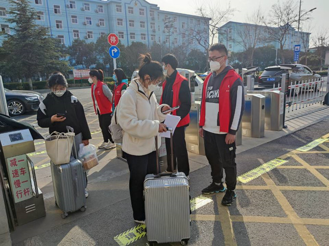 3月1日一早,全体人员准时到岗、各司其职,为即将进入校园的同学们保驾护航。同学们按规定间距有序经过体温检测、健康码、行程码核验、上交《14天健康状况登记表》、《学生承诺书》等程序后,跟随志愿者的指引,有序进入生活区宿舍楼。3月2日上午开展全员核酸检测。