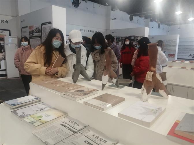 蚌埠学院淮河文化研究中心展区由淮河文化研究中心工作开展情况介绍、淮河文化研究中心取得成果与部分实物展示、我校师生以淮河文化为主题创作的手工作品、国家级非物质文化遗产花鼓灯文化展区四个部分组成。同学们跟随引导员认真听讲解,对展厅展品进行仔细地欣赏,受益匪浅。