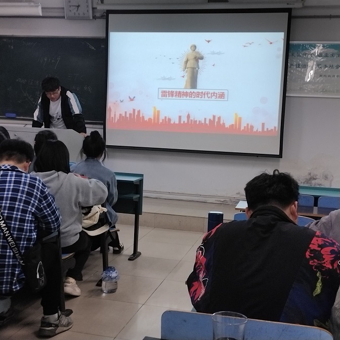 传承雷锋精神,争创优良学风。3月14日,学院学生会走进教室,通过讲述雷锋先进事迹的方式宣扬雷锋精神,引领同学们学习雷锋无私奉献的优良品质。虽然雷锋已逝,但雷锋精神永存并将得到延续。会上学生代表宣读倡议书,号召同学树立正气,优化校风、学风,传递弘扬美德正能量,形成了“人人学雷锋,天天讲雷锋,时时有雷锋”的良好风气,使雷锋精神在我们的校园内发扬光大,传承不息。