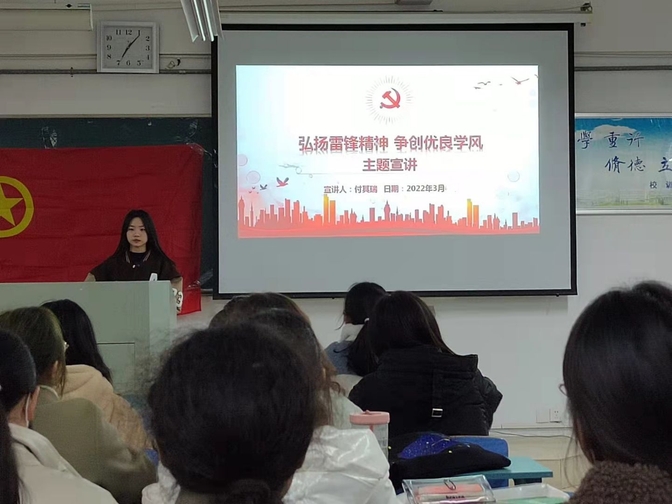 理论宣扬“雷锋”精神。3月5日,21级团支部召开了“弘扬雷锋精神,争创优良学风”主题班会活动。此次活动主要围绕雷锋的生平、雷锋精神等方面展开了学习和讨论,团支书付其瑞首先介绍了雷锋精神的基本内涵和核心,雷锋精神就是全心全意为人民服务,为了人民的事业无私奉献。随后,同学们也谈了自己对雷锋精神的认识,并表示会以此次主题班会为出发点,在本次志愿服务月中,走出教室、走出校园,尽自己所能为社会做贡献、用实际行动诠释雷锋精神。