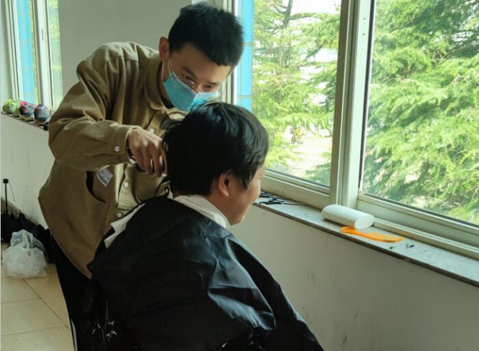 加强校园出入管理后,为方便学生理发,工程管理2班班长袁量主动购买了理发工具,为同学义务理发。截至目前,袁量同学已为20余同学提供了服务,越来越多的同学开始预约理发。