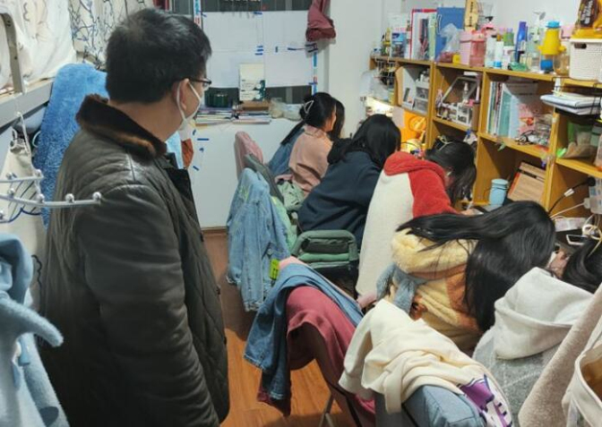 为深入了解学生的学习生活状态,学院领导及辅导员经常走进教室听课、深入宿舍走访。在交流中反复叮嘱同学们巩固疫情防控意识,做好个人卫生,同时不忘关心宿舍用电安全、学生饮食安全和个人生活情况,及时为学生提供帮助。走访中,许多同学均能自觉开展学习,除完成校内课业外,主动备战四六级、备考教师资格证等,营造了良好的寝室学习文化氛围。