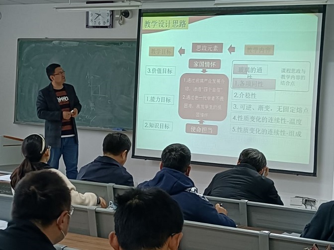 比赛分为教学设计和课堂教学两个环节,选手们“润物细无声”的将习近平新时代中国特色社会主义思想、理想信念教育、艰苦奋斗的科学探索精神、密切合作的团队精神、伟大抗疫精神融入到课程内容中,做到了思想教育与专业知识相互渗透、显性教育与隐性教育相互结合。选手们精彩的设计、巧妙的引入,充分展示了各自的教学风采和理论功底。本次课程思政教学设计大赛中,校级教坛新秀李彤老师、青年博士焦宇鸿老师表现优异获得一等奖,将被推选参加学校的课程思政教学设计大赛决赛。