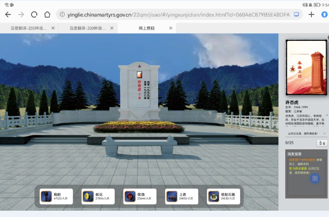 以班级为单位,登陆中华英烈网,学习英雄先烈们的英勇事迹,为先烈献花、留言,寄语深深哀思。引导广大青年学生缅怀先辈、铭记革命先烈光荣事迹,倍加珍惜今天幸福生活,不断增进爱党、爱国的情感,立志为实现中华民族伟大复兴的“中国梦”而努力学习、健康成长。