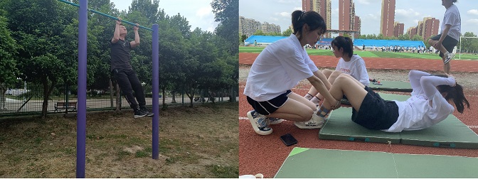 体能突破区域进行的是引体向上和仰卧起坐两项运动。在保障安全的前提下,最大限度地做到对每一位参赛学生公平公正。比赛期间,如果对自己成绩有疑问或者不满意的情况,可以重新测试一次。虽然天气炎热,但是比不上广大同学比赛时激昂的斗志和取得好成绩的决心。