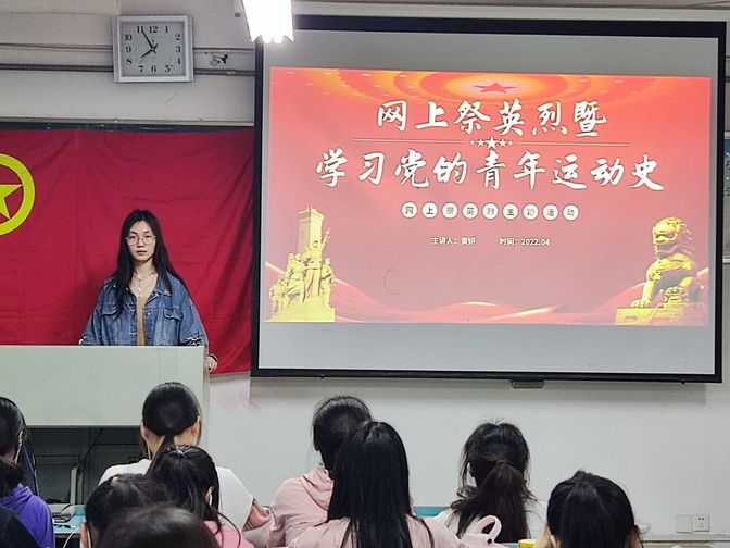 “网上祭英烈暨学习党的青年运动史”主题团日活动。为响应国家号召,悼念革命先烈,缅怀先烈的丰功伟绩,继承光荣传统,4月3日下午,英语专业21级1班团支部举办“网上祭英烈暨学习党的青年运动史”主题团日活动,全体同学参加。团支书黄妍通过问答的方式向同学们分享了五四运动、一二九运动等著名的青年运动,并详细地讲述了毛泽东、陈延年等先辈们的革命故事,同学们积极讨论,热情发言。黄妍动情地说:“先辈放心,山河无恙!请党放心,强国有我!”团支部副书记刘振林也感慨“今天的幸福生活来之不易,一定不能忘记革命先辈们的付出!”同学们在讨论中追忆先烈,学习爱国精神,受益匪浅。