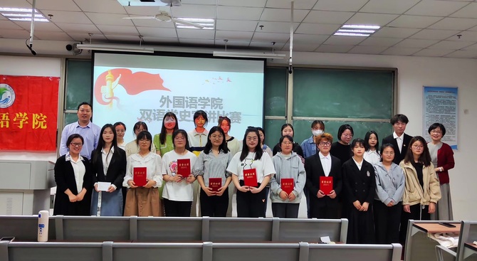更好地迎接党的二十大,引导团员青年深刻领会“两个确立”的重要意义,增强“四个意识”、坚定“四个自信”、做到“两个维护”,用实际行动践行“请党放心、强国有我”的青春誓言,5月3日,外国语学院团总支举办“心向光”双语党史宣讲比赛。学院党委书记赵睿、副书记黄灿、专业教师李娜、团总支负责人王娜娜参加活动,并为获奖队伍颁奖。