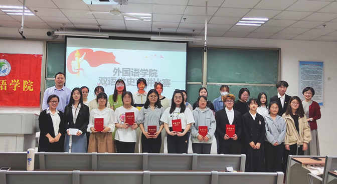 外国语学院举办“心向光”双语党史宣讲比赛,参赛选手用双语来讲中国故事,讲述百年建党的筚路蓝缕、百年伟业的伟大成就,将党史学习教育与专业学习相结合,以“用外语讲好中国故事”为主线,彰显出“党建+外语”的专业特色。