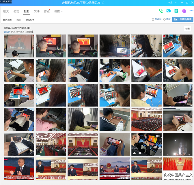 2022年5月10日上午,计算机与信息工程学院“两红两优”40名团员青年在重行楼404会议室集中收看庆祝中国共产主义青年团成立100周年大会直播。学院各团支部也组织团员青年通过网络、多媒体等方式收看大会直播,共同庆祝中国共青团的百岁生日,认真聆听习近平总书记发表的重要讲话。