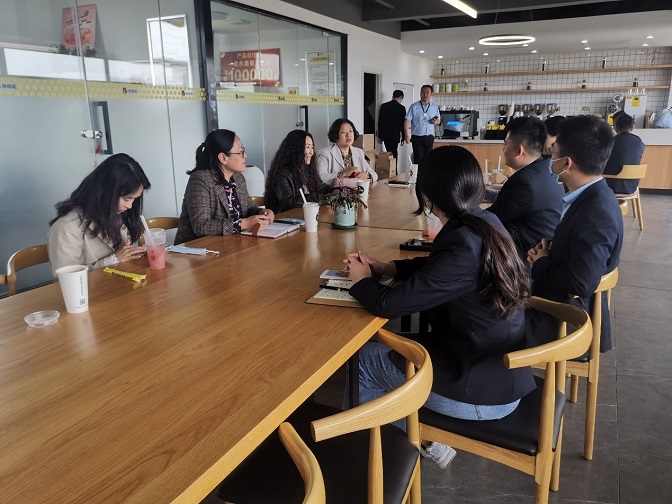在安徽汇旺餐饮管理有限公司(甜啦啦总部),杨晓秋一行详细了解了公司的发展历程、实体规模、运营机制、公司文化等,先后参观了线上运营直播车间、公司产品研发基地、员工休闲场所等,公司还展示了即将上市的研发产品。座谈时,杨晓秋指出学院专业设置与公司所需人才存在高度吻合,在多个环节有着巨大合作空间,愿意就相关领域开展合作,做实做细实习实训。座谈会上,双方在电商运营模式、党建双创、品牌方案塑造等领域进行了深入探讨,达成初步共识。