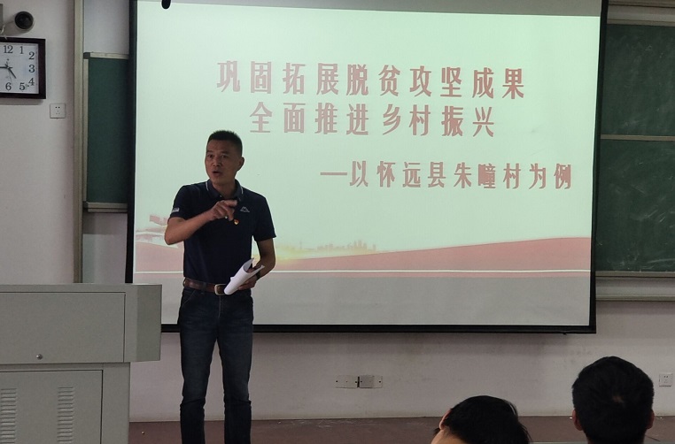 为了进一步做好选派村驻村工作,巩固拓展脱贫攻坚成果、着力推进乡村振兴、提高广大学生对乡村振兴理论与实践的了解、帮助选派村发展产业,5月27日下午,学校党委宣传部和马克思主义学院联合举办“巩固拓展脱贫攻坚成果 着力推进乡村振兴”道德讲堂活动在综合楼G306开讲,马克思主义学院副院长、驻村第一书记余建杰主讲,马院部分教师和120多名学生听取了报告。