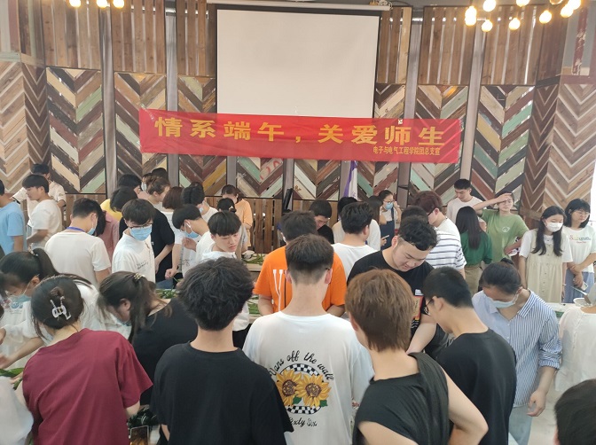 为弘扬中华民族优秀传统,挖掘和传承端午节文化内涵,进一步加强劳动教育,5月28日下午12:30,电子与电气工程学院联合后勤管理处饮食管理科在学校一食堂举办“粽叶飘香,情系端午”主题活动。学院团总支教师及90余名同学参加活动。