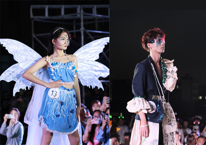 本届比赛继续秉承“环保,绿色,健康”的主题,要求学生从可持续材料的选择与可再生原材料的创新,以及废旧面料的二次改造与创新利用等方面,探索环保设计应用的新道路,表达设计师对于环境保护的共同关注。比赛于3月20日正式启动,活动期间共收到全校有效参赛设计稿50余件,经过严格的初审,共遴选31件作品参加最终的决赛。决赛晚会上,31件作品按设计主题分为四组展示,设计师和模特共同登台,由设计师阐述创意理念,模特进行T台展示。选手们在舞台上尽情展示,青春活泼的气息和不亚于职业模特的专业台风,得到了现场观众的阵阵掌声。比赛中还穿插了精彩的舞蹈、歌曲演唱、观众互动等精彩环节,掀起一阵阵热潮。