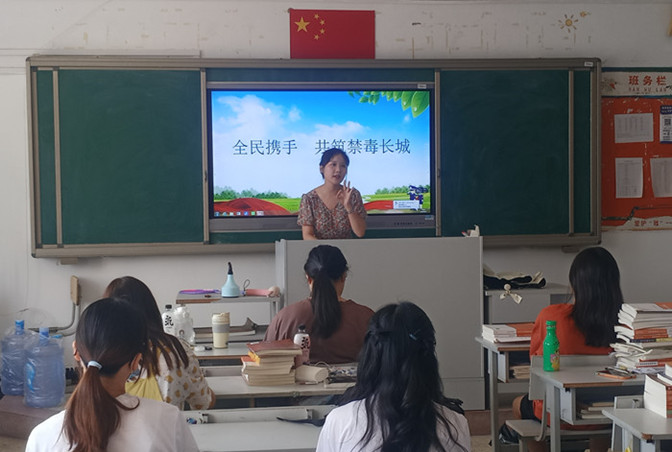 在各班的班会上,各班辅导员给同学们讲述了毒品的概念、种类及毒品的危害,同时结合具体的吸毒案例,用触目惊心的图片和事实案例来告诫学生必须认清毒品的危害,在生活中提高自我防控意识,坚决拒绝和远离毒品。紧接着各班级按照学院统一要求,通过集中播放禁毒宣传公益短片《青春不是挥霍的筹码》《别让“我以为”变成“我后悔”》,集中观看全省禁毒“云知识”短视频大赛一等奖作品《无孔不入的第三代毒品》《逝去的幸福》,集中观看省禁毒委、团省委相关负责人致辞寄语视频,集中学习中华人民共和国禁毒法、发起禁毒倡议、齐唱禁毒歌曲《生命》等固定模块,使学生们了解毒品的生理危害、心理危害和社会危害等,让学生在充分了解禁毒历史与现状的基础上,清醒地认识到毒品可能就在我们身边,要时刻注意远离、拒绝毒品的诱惑。