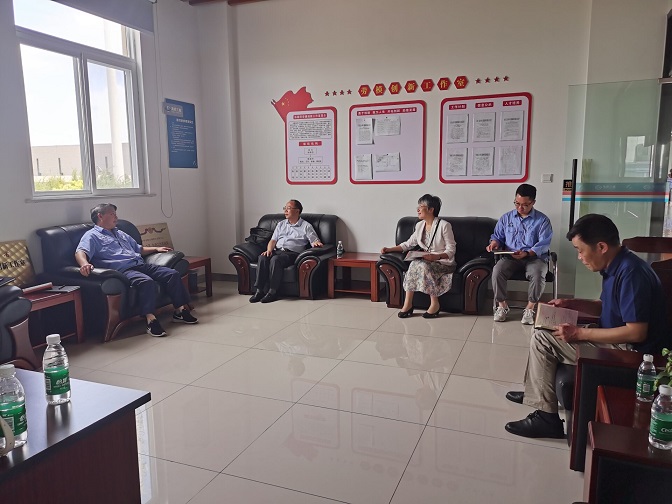 在海控三鑫(蚌埠)新能源材料有限公司,陈国龙一行与公司党委书记、总经理袁飞,人力资源部部长王旭,材料与化学工程学院2016届毕业生邢奇平等人进行座谈交流。