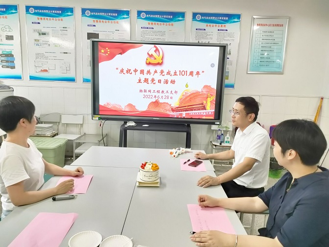 为庆祝中国共产党成立101周年,激励广大教工党员坚定理想信念、牢记党的宗旨,更好地发挥党员先锋模范作用,计算机与信息工程学院物联网工程教工党支部于6月28日下午开展了“迎七一”共过“党的政治生日”主题党日活动。