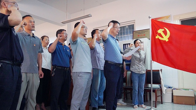 宣入党誓词,忆入党初心。“我志愿加入中国共产党,拥护党的纲领,遵守党的章程,履行党员义务……”在鲜艳的党旗下,全体党员高举右拳,庄重重温入党誓词。短短80个字,字字掷地有声,严肃、激动、自豪的情绪在每个人脸上流露。铿锵有力的宣誓声,体现了计算机与信息工程学院全体党员对中国共产党无限忠诚与热爱,强化了党员意识和入党初心,更加激发了同志们干事创业的激情和信心。