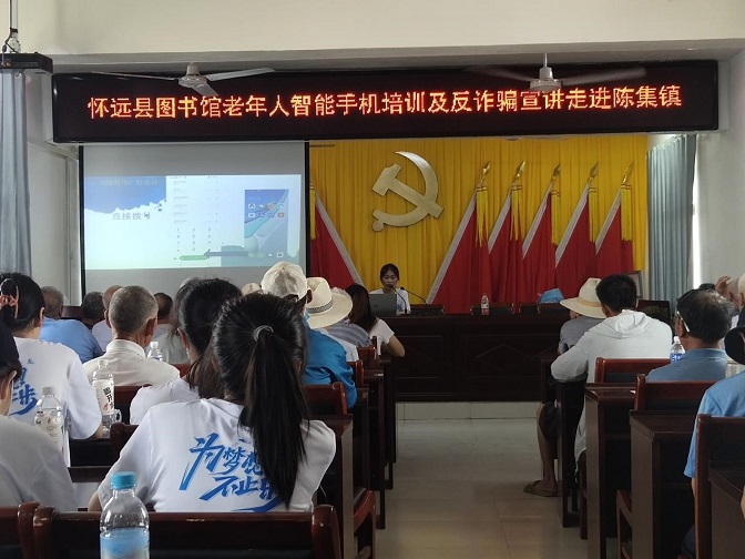 6月21-22日,材料与化学工程学院“怀远图书馆志愿服务团”联合怀远县图书馆,开展了“关爱老人,学习智能,防骗防诈”实践活动。实践小分队在怀远县图书馆的配合、支持下,分别在怀远县图书馆、陈集镇、榴城镇开展活动,开展老年人智能手机使用培训和反诈骗宣传,指导老年人安装国家反诈APP,帮助他们了解智能手机的基本操作及其识别一些典型且常见的诈骗手段,还鼓励他们呼吁身边的邻居和朋友谨防电信诈骗。
