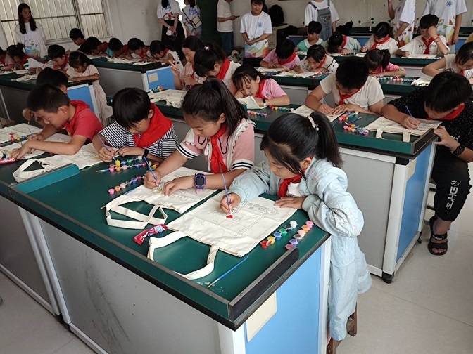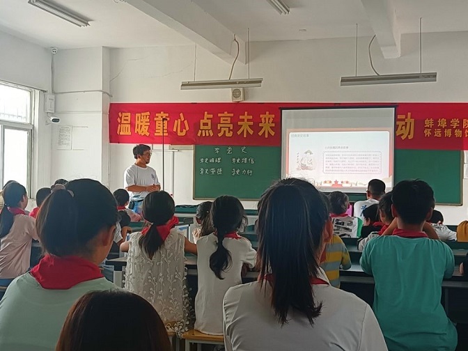 6月22日上午,实践团队奔赴怀远县唐集镇金轮小学,在学生中以PPT的方式进行讲述中国共产党的由来和光辉历史,引领他们积极跟党走,向党靠拢,并开展在手提袋上进行爱国主义绘画比赛。22日下午团员们参观了怀远抗日战争年代留下来的碉堡,感受怀远人民坚持抗战到底的决心和顽强拼搏的精神,让队员们更加认知到宣传党史的重要性。23日队伍来到了怀远县白乳泉景点,在游览景点的游客中进行党史宣讲。