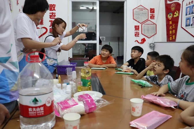 6月21日下午,“化学科普团”成员有序进入延安街道胜利四村社区,为小朋友呈现出有趣的化学实验,在孩子们心中种下科学的种子。走进化学、了解化学、热爱化学,激发孩子们探索科学的兴趣。