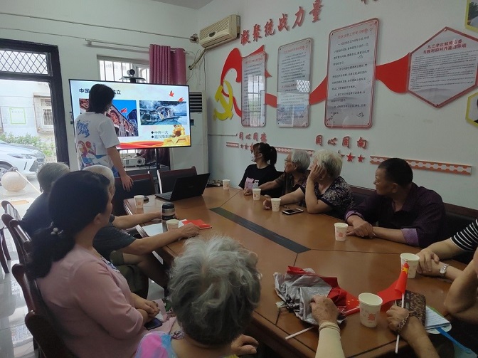 6月21日下午,材料与化学工程学院暑期社会实践“红色宣讲团”进入延安街道胜利四村社区,深入基层一线,在社区居民中开展面对面开展小规模、互动式、有特色、接地气的国情知识宣讲活动,让宣讲既有深度,更有温度。团队成员的宣讲内容,讲透当前国家创新理论、讲好国家过去发展成就、讲清当前内外形势任务、讲明未来发展前景。在与社区爷爷奶奶的交流中,了解到他们那个年代的艰辛与不易,认识到从过去到现在我们生活上发生的翻天覆地的变化。