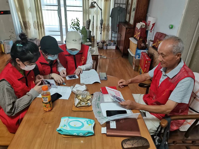 接着,寰宇红色专项实践团来到老党员何运川同志家中进行采访。何爷爷是金寨县梅山镇的老党员、老干部,一直在为金寨县贡献着自己的力量,已经82岁高龄的何爷爷,经常在红军广场做志愿者,与来访者交流思想。何爷爷也是梅山镇新时代红色宣讲员,在社区发挥余热,做些力所能及的事情。实践团在与何爷爷的交流中,听爷爷讲述中国共产党成立的艰辛历程,重温中国共产党的峥嵘岁月,感受到革命前辈们崇高的革命理想和坚定的革命意志。何爷爷对实践团成员说道:“在共产党的领导下,全国人民团结在一起,我们有统一的方向,就无往而不胜。我们有信心实现第二个百年奋斗目标,宏伟蓝图需要靠你们这一代来绘就。”何爷爷不忘党的恩情的精神和谆谆教诲让实践团成员牢记在心中。结束与何爷爷的访谈之后,实践团来到金寨县梅山镇潭湾社区了解金寨发展情况,学习金寨县脱贫攻坚的成功经验,体会金寨县万众一心齐攻坚的决心。