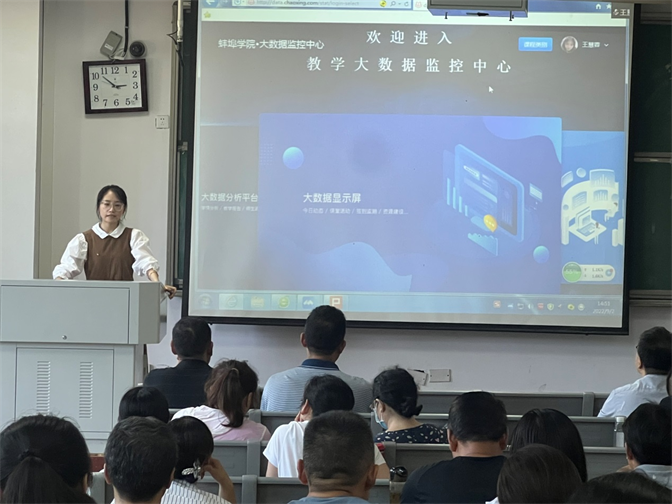 为加强线上教学管理,实施线上教学精准监控,9月2日下午,我校在综合楼G106教室举办教学质量监控与评价系统使用培训会议。培训邀请了超星尔雅教育集团安徽分公司培训师王慧蓉主讲,全校90余名校院两级教学督导员参加了培训。