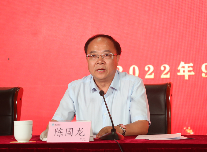 陈国龙在讲话中回顾了过去一年来,学校聚焦高质量内涵式发展、紧扣立德树人根本任务,在各项事业上取得的良好发展,并向为学校建设和发展付出辛勤劳动的全体师生员工致以崇高的敬意和衷心的感谢。